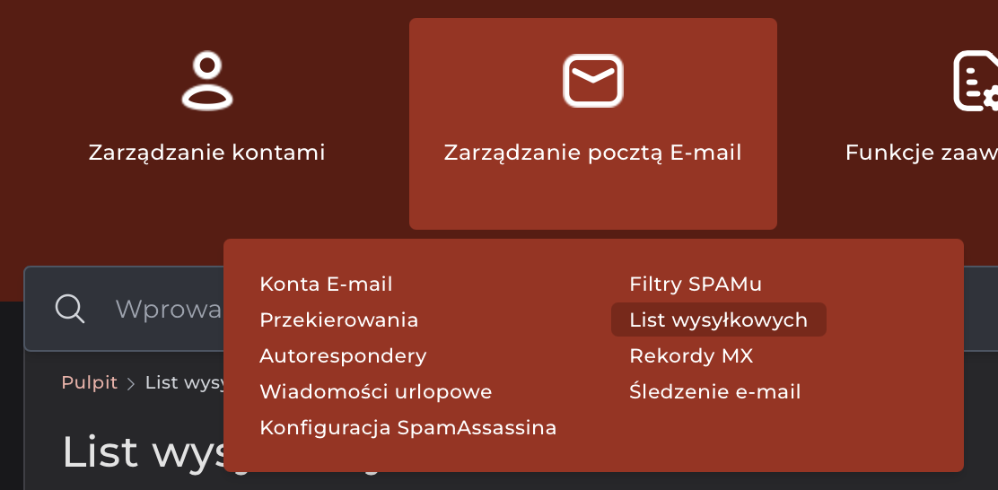 Przejdź do sekcji Zarządzanie pocztą E-mail → Listy wysyłkowe.