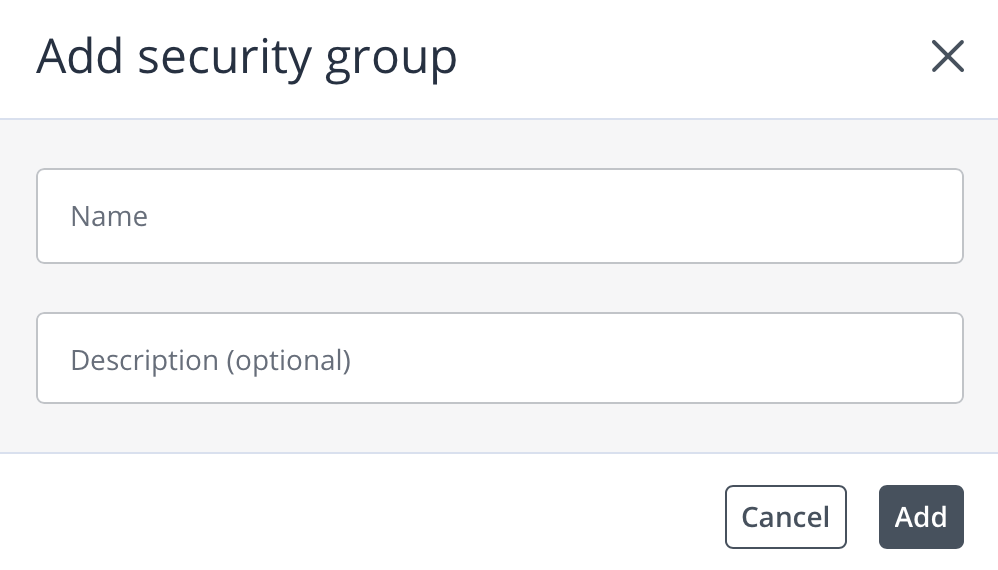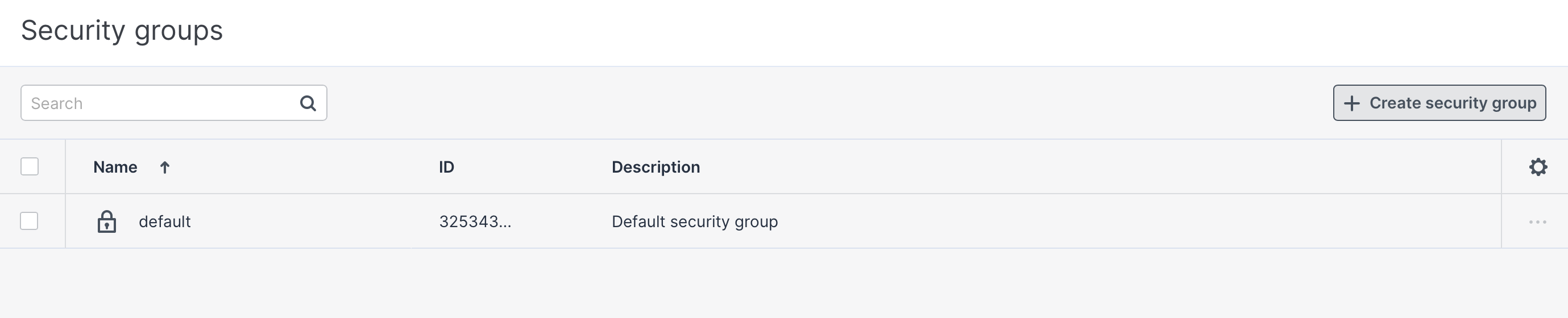 Będąc w zakładce Security groups, kliknij przycisk + Create security group w prawym górnym rogu.