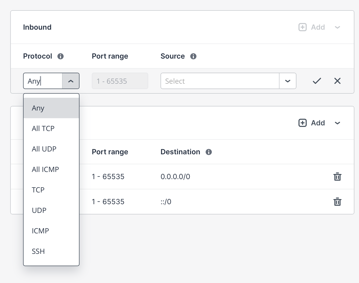 Inbound (Ruch przychodzący): Tutaj decydujesz, kto z Internetu może połączyć się z Twoim serwerem. To najważniejsza sekcja.