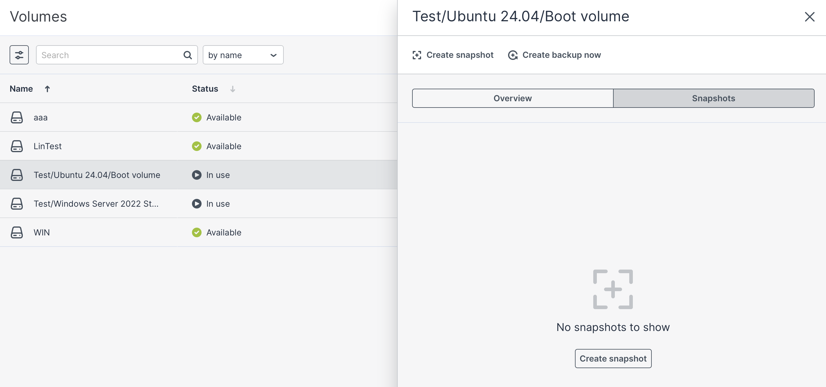 Create volume: Pozwala stworzyć nowy, niezależny dysk na podstawie tego snapshota.