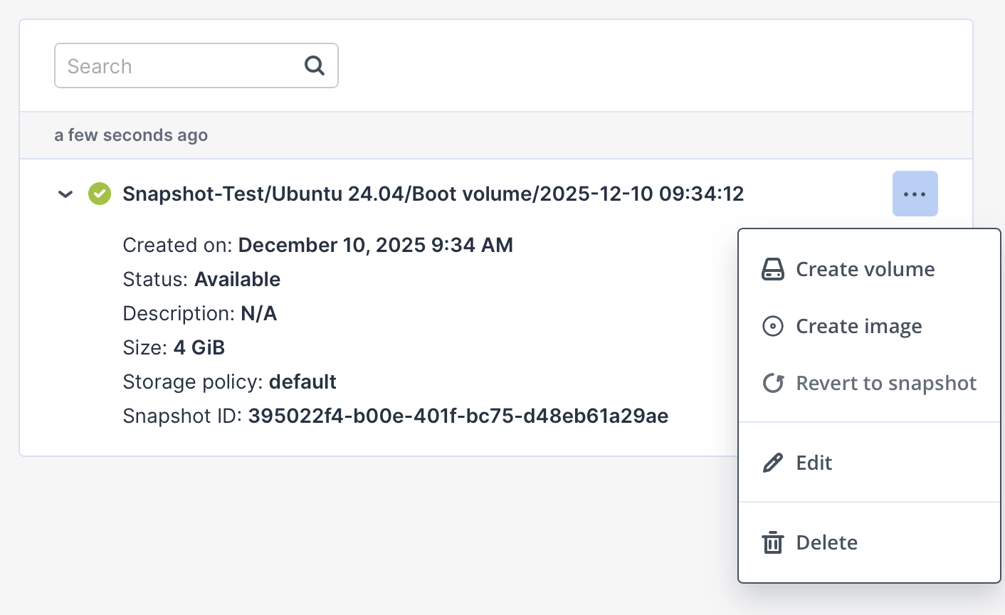 Kliknij ikonę trzech kropek (menu akcji) przy odpowiednim snapshocie.