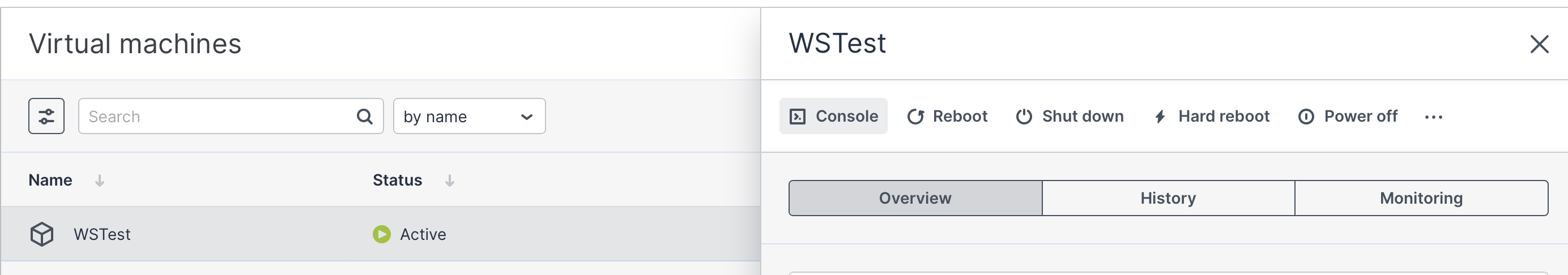 Zaloguj się do serwera przez Pulpit Zdalny (RDP) lub poprzez Konsolę wbudowaną w Panelu Cloud po kliknięciu w daną maszynę wirtualną.