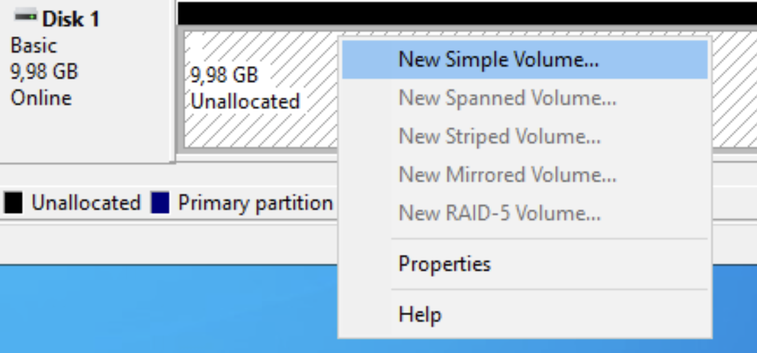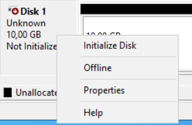 Kliknij prawym przyciskiem na czarny obszar Unallocated.