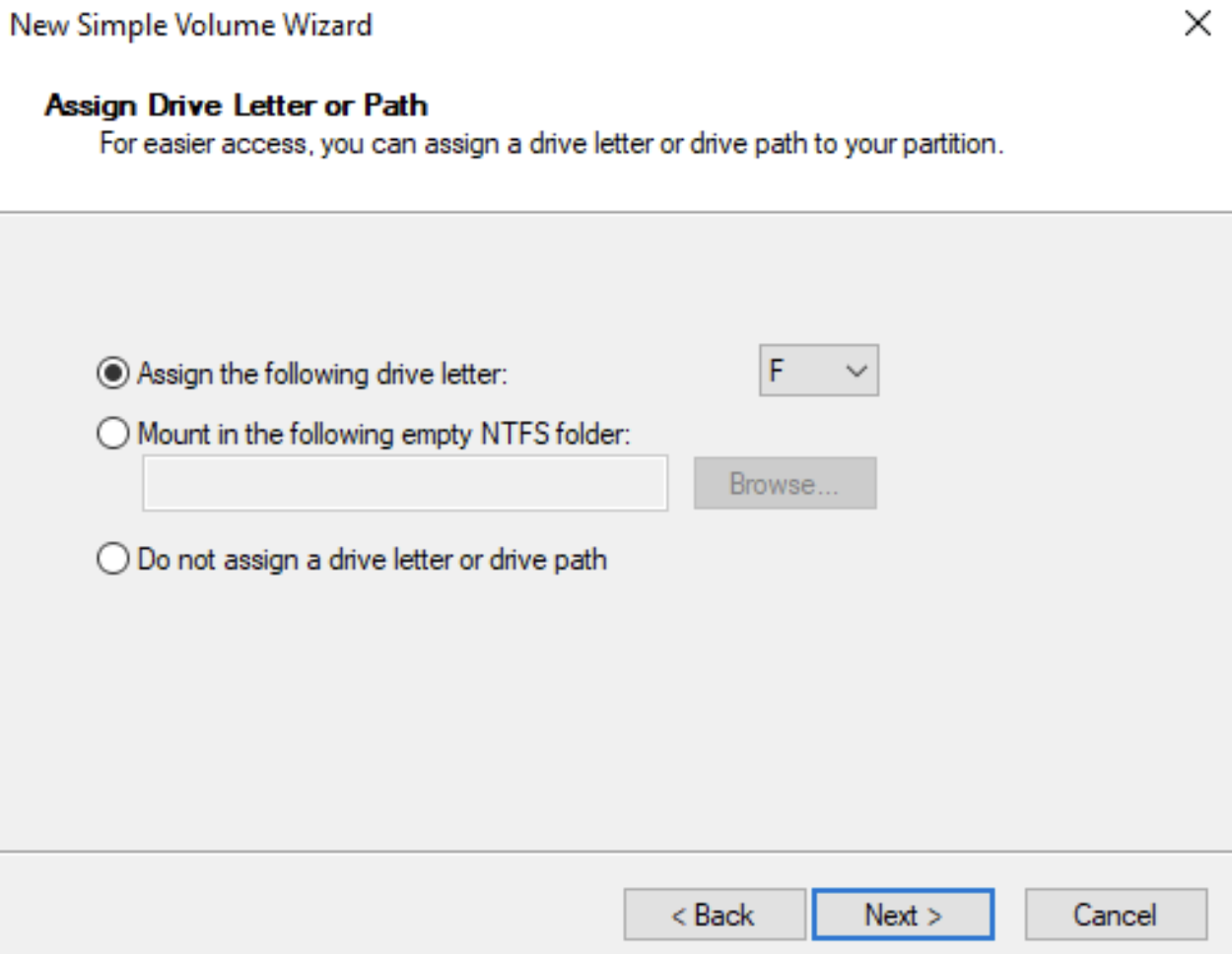 Wybierz wolną literę (np. F:) i kliknij OK.