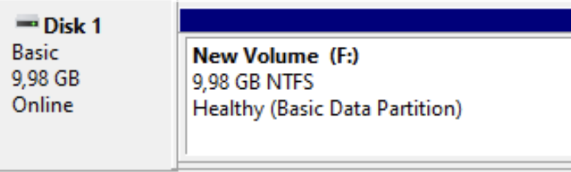 Jeśli po przełączeniu w tryb Online dysk nie pojawił się w systemie, kliknij prawym przyciskiem na niebieskiobszar partycji.